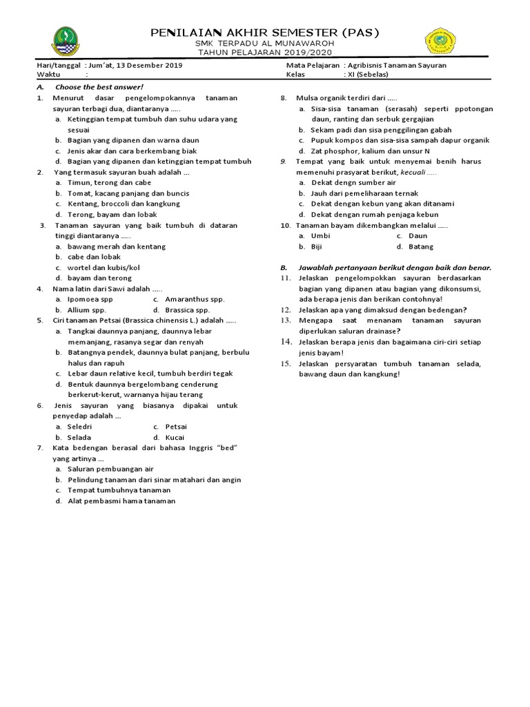 Soal Semester 1 Agribisnis Tanaman Buah Xii Atph Pdf from imgv2-2-f.scribdassets.com Kumpulan soal agribisnis tanaman buah beserta jawabannya. We did not find results for: Maybe you would like to learn more about one of these? Check spelling or type a new query.